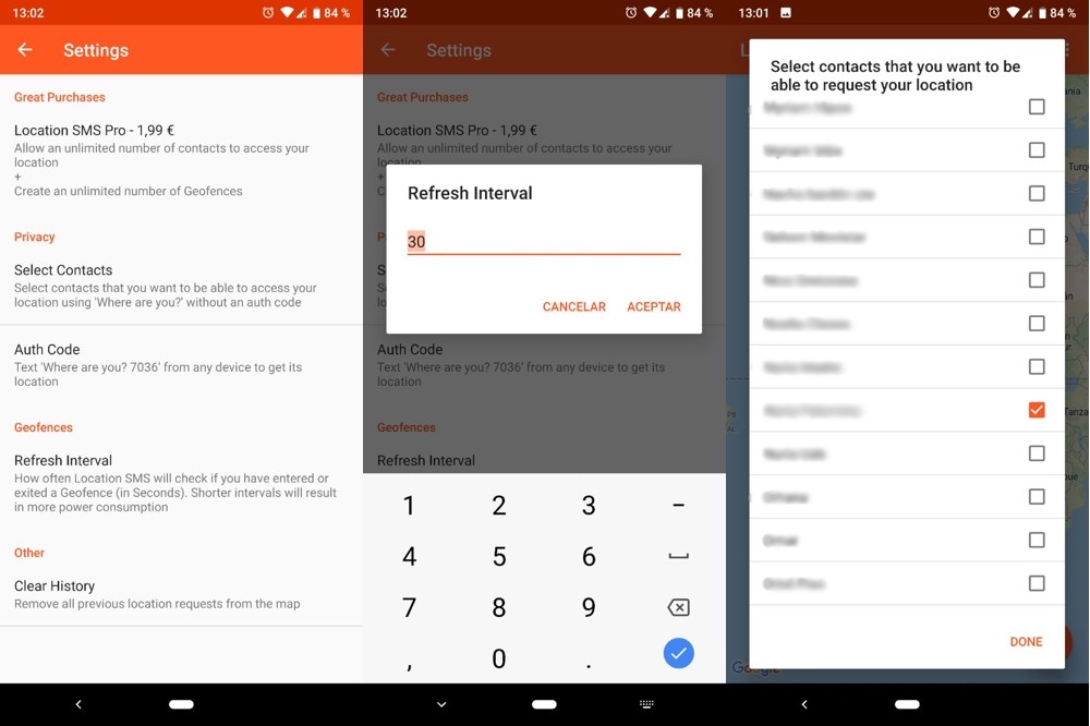 Además de la función de enviar la localización, Location SMS nos permite realizar algunos ajustes para adaptarnos a nuestros gustos. El primero de ellos es seleccionar de nuestra lista los contactos concretos que queremos que puedan enviarnos un SMS. Por otro lado, la aplicación nos deja crear un código concreto para que cualquier usuario pueda enviarnos también este SMS y recibir nuestra ubicación de vuelta.